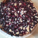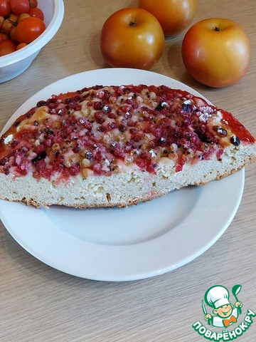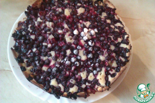 Ровным слоем покройте тесто смородиной, слегка присыпанной мукой и сахарной пудрой.
