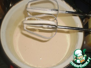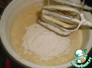 Добавить растопленное сливочное масло, молоко. Перемешать до однородности. Добавить муку и взбивать недолго, пока не получите однородную массу.