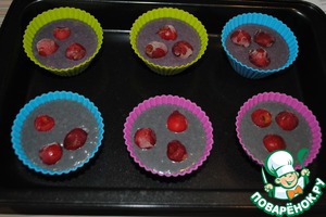 Разлила тесто по формочкам. Верхний ряд с домашним разрыхлителем, нижний с магазинным.
