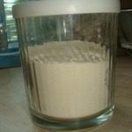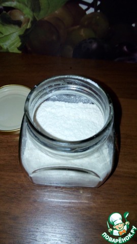 И пересыпать в баночку. В объеме получилось более 100 мл., но мне этого разрыхлителя хватит не надолго, поэтому я не боюсь что он слежится, сделается комком и. т. д.