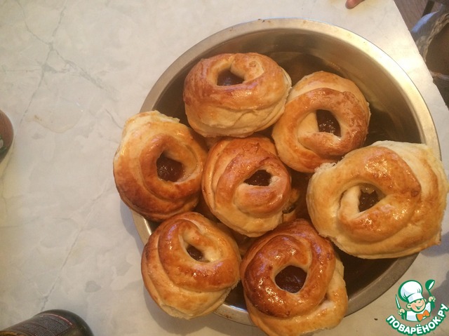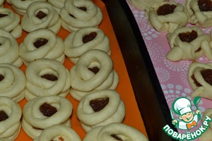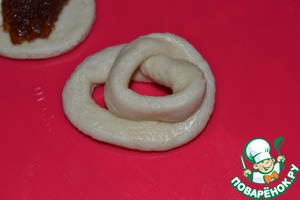 Выкладываем свернутую восьмерку на кружок с начинкой и убираем на смазанный противень.