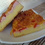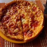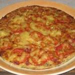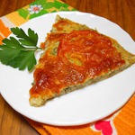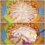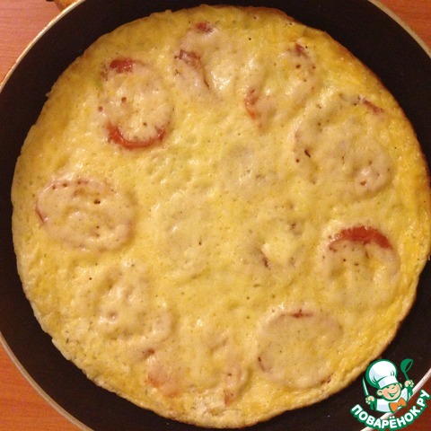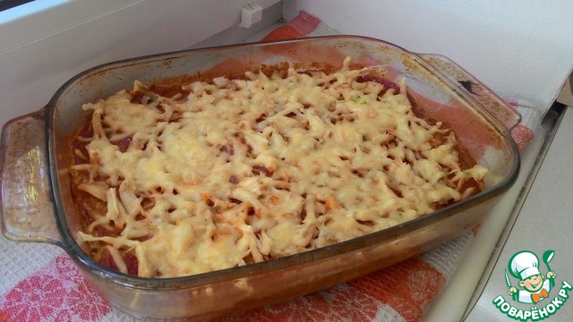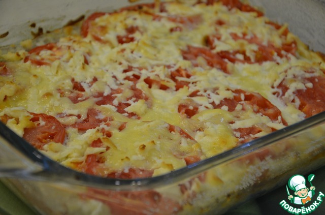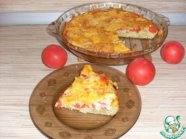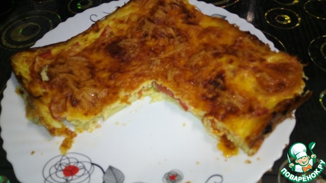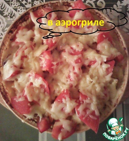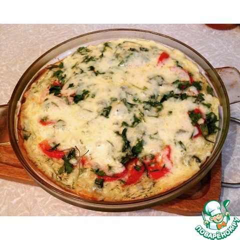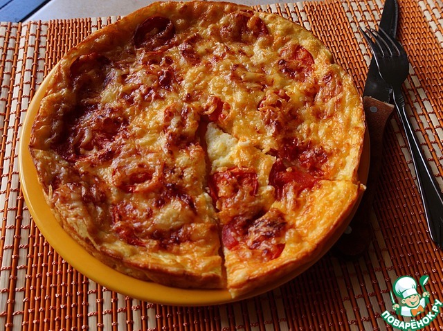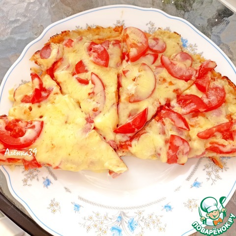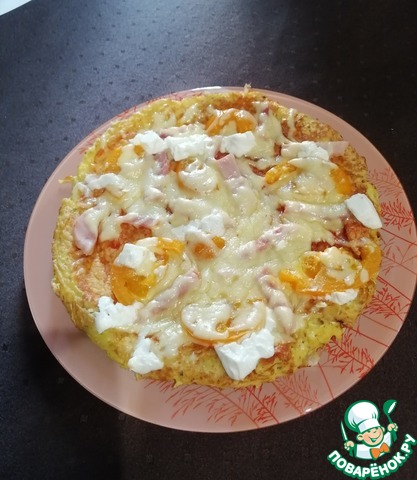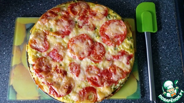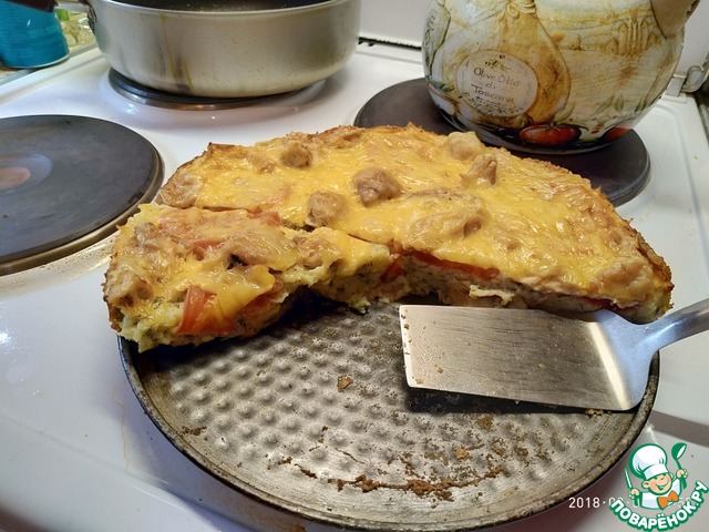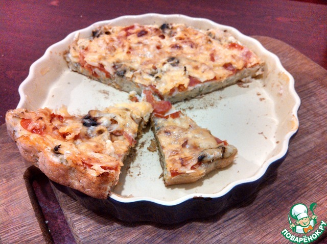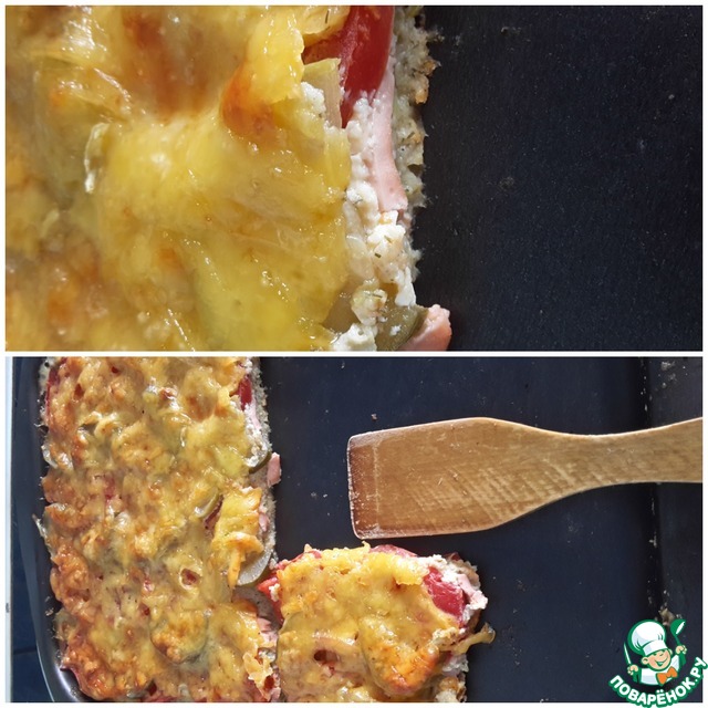 Достаём из духовки "пиццу" и даём ей немного остыть. Не пытайтесь достать её горячей, т. к. сделать это всё равно не получится.