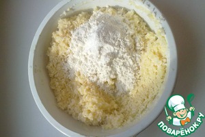 Всыпать муку с разрыхлителям, снова перемешать. Убрать тесто в холодильник на пол часа.