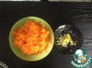 Почистить морковь, натереть на мелкой терке. И натереть немного лимонной цедры.