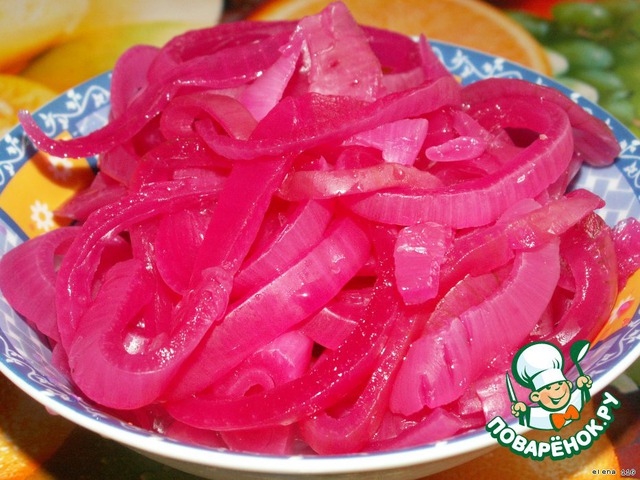 При таком мариновании лук получился вкусный и яркий. Свёклу нарезала пластинами, она тоже хорошо замариновалась. Благодарю за рецепт!