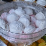 Агар с водой нагреть почти до кипения при помешивании, чтобы он растворился. Всыпать 450 г. сахара, довести до кипения и поварить 5-10 минут, пока сироп не начнет тянуться тонкой нитью с ложки.