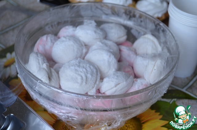 Не трогаем зефир сутки - даём ему стабилизироваться и подсохнуть. Через сутки-двое посыпаем сахарной пудрой и соединяем попарно. Наслаждаемся забытым вкусом нашего безмятежного советского детства.