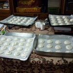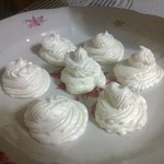 Пока масса еще теплая, даже горячая, отсаживаем зефиринки через кондитерский мешок (или через файл, обрезав кончик). Всё делаем очень быстро, потому-что агар схватывается буквально "на ходу".