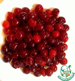 Вишню промыть, удалить косточки. Образовавшийся сок слить и перемешать вишню с 1 ст. л. крахмала и 1 ст. л. панировочных сухарей. -