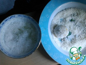 Теперь обмакиваем каждый шарик из теста сначала в яичном белке, затем обваливаем в кокосовой стружке и выкладываем на противень, застеленный пергаментной бумагой. -