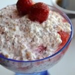 [+5]Потом смешала готовую холодную кашу с греческим натуральным йогуртом. В качестве ягоды использовала размороженную клубнику.