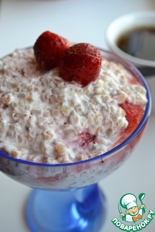 По количеству ингредиентов вышло так: 143 г гречневой крупы на 325 мл молока; 250 г йогурта и 0,5 кг клубники (включая украшение).
