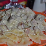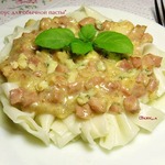 Выкладываем макароны, щедро поливаем соусом. Этот вариант соуса показался мне очень интересным на вкус, + быстрота приготовления, конечно, не может не радовать.