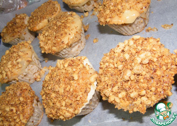 Для сладкоежек сверху можно помазать карамельной глазурью и посыпать орешками.