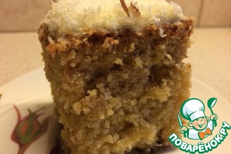 Добавить молотые орехи с изюмом, смешать с мукой и разрыхлителем.