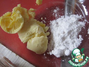 Когда яйца остынут, вынимаем желток и растираем с сахарной пудрой.