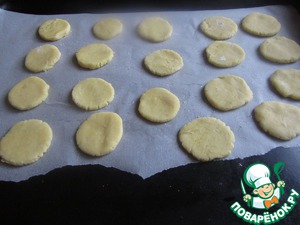 После придания формы печенью выкладываем его на пекарскую бумагу, чуть смазанную маслом. -