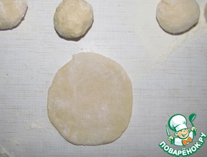 Поднявшееся тесто вымесить, разделить на куски по 30-50 г, раскатать в лепешки.
