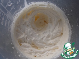 На следующий день взбиваем все ингредиенты для топпинга до мягких пиков...