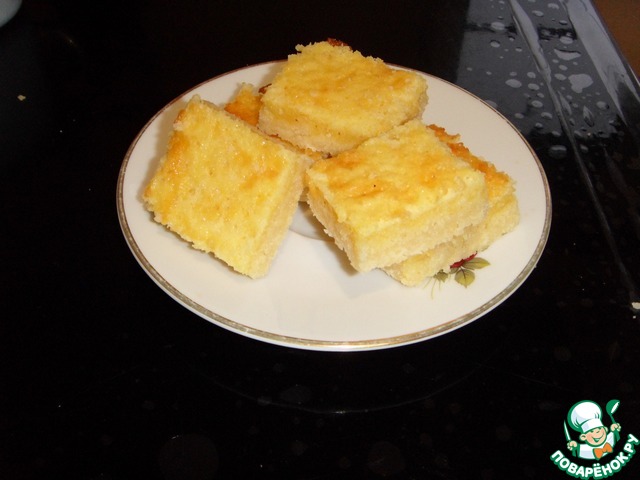 Достаем из духовки и даём постоять 20-25 минут. Затем разрезаем на квадратики или ромбики.