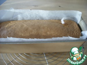 Прямоугольную форму для кекса застелить пергаментом, влить наше тесто и выпекать в заранее разогретой духовке при 180 гр 30-35 минут. Размер моей формы 30х10 см, высота бортика 7 см.