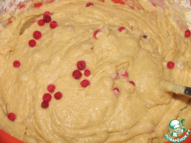 Добавить бруснику. Я положила 3 горсти, но моя горсть небольшая...