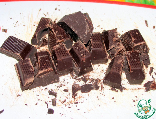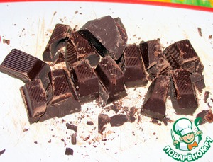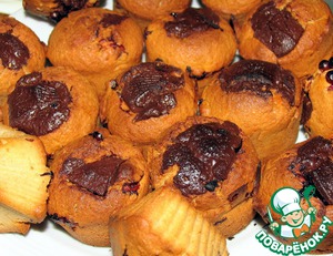 Шоколадную плитку разрезала на части и положила в тесто в середину каждой ячейки.