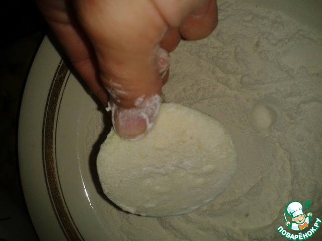 Сковороду разогреть и налить подсолнечное масло. Каждый кусочек кабачка обвалять в муке с 2-х сторон и жарить с двух сторон.