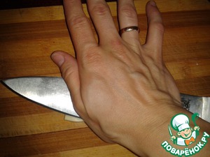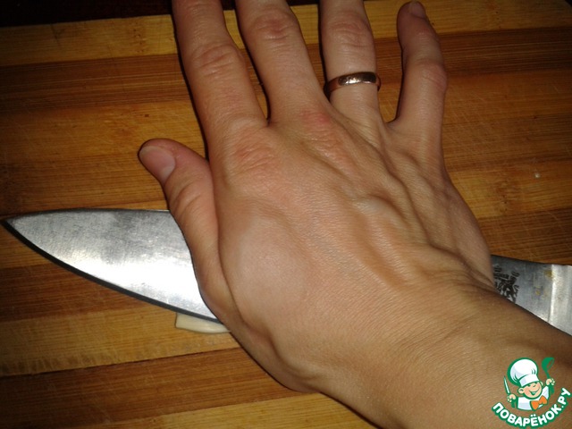 Ножом сверху раздавить чеснок. Я специально показала на фото, как это делать.