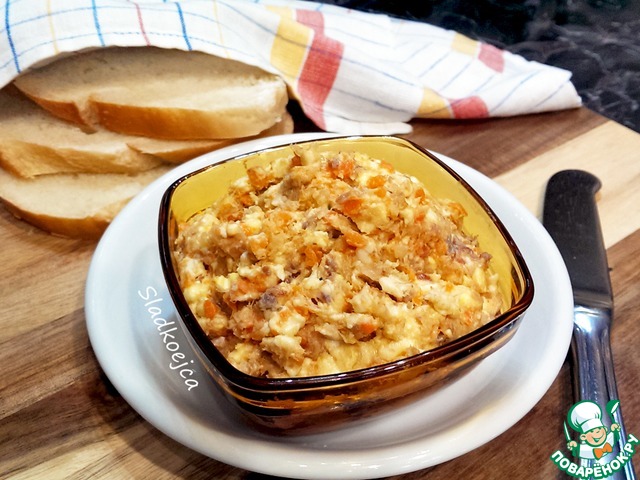 Это самая вкусная намазывалка из всех, которые я пробовала. По вкусу очень напоминает красную икру, всегда идет на ура! Рецепт мама "принесла" из гостей много лет назад, и теперь этот паштетик у нас очень часто!!