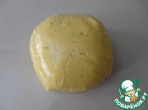 Соединяем крошку с яичной смесью и быстро вымешиваем тесто. Заворачиваем его в пленку и оставляем в холодильнике на полчаса.