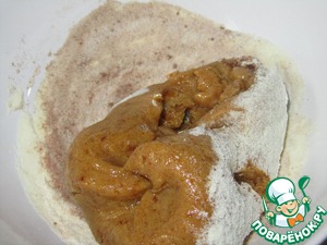 Выложить содержимое блендера (Получилась вот такая ирисная масса) в миску к сухому молоку. -