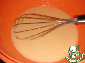 Яйца взбить с сахаром и ванилином венчиком.