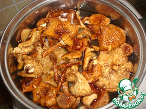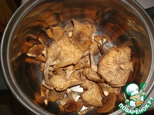 Сначалa варим грибной бульон. Для этого сушеные грибы (у меня это опята) положить в кастрюлю и залить водой.