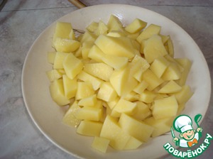 Картофель режем кубиками.