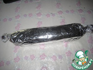 Плотно заворачиваем картошечку вот в такую колбаску-конфетку