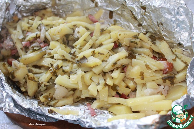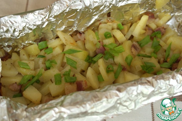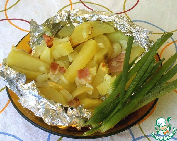 Не знаю, как у вас, а у нас на пикнике обязательно найдется самый голодный, который безумно хочет есть и дождаться, пока прогорят угли и мясо будет готово, ему просто невозможно (это относится в первую очередь к ребятне, конечно). Так вот - для таких изголодавшихся и придуман данный рецепт картошки с салом. Секрет в том, что такая картошка готовится очень быстро и на открытом огне. Приглашаю Вас попробовать.