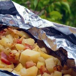 Заготовку из картошки вы можете сделать еще дома - перед выездом, а можете сделать на природе - в тот момент, когда ребятня и взрослые заняты сбором дров, установкой палаток и прочими важными делами.