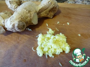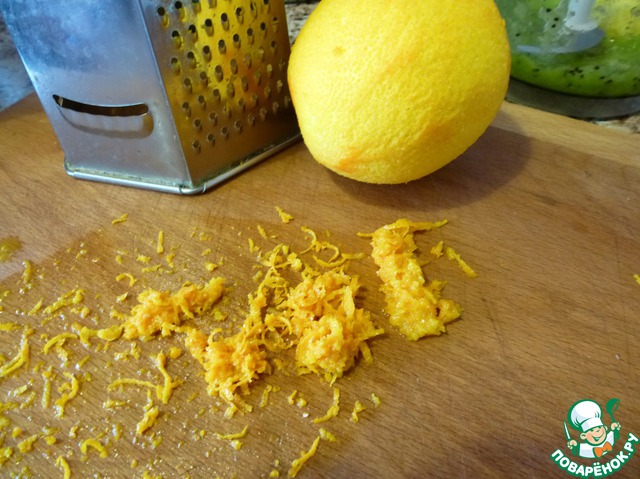 • Киви, имбирь, вино, сироп из-под ананасов, сок и цедру апельсина, соус-маринад терияки смешать в миске, посолить по вкусу. Добавить перец. В маринад добавляем мясо и маринуем ровно 1 час.
