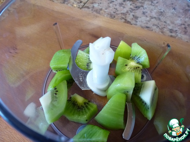 • Киви очистить, крупно нарезать и измельчить в блендере.