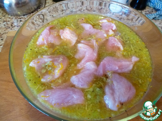 Рецепт «Филе индейки в фруктовом маринаде с соусом терияки»: