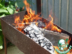 • Пока маринуется мясо, в мангале разжигаем костер.
