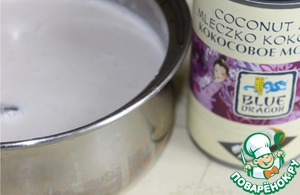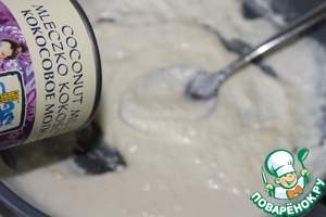Интенсивно помешивая, заливаем муку кокосовым молоком, и, помешивая, доводим до загустения. Чуть присаливаем по вкусу