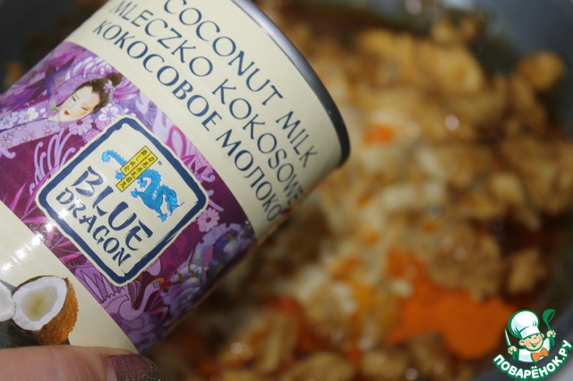 Долить кокосовое молоко и потушить еще 10 минут. Ароматы в этот момент стояли сногсшибательные