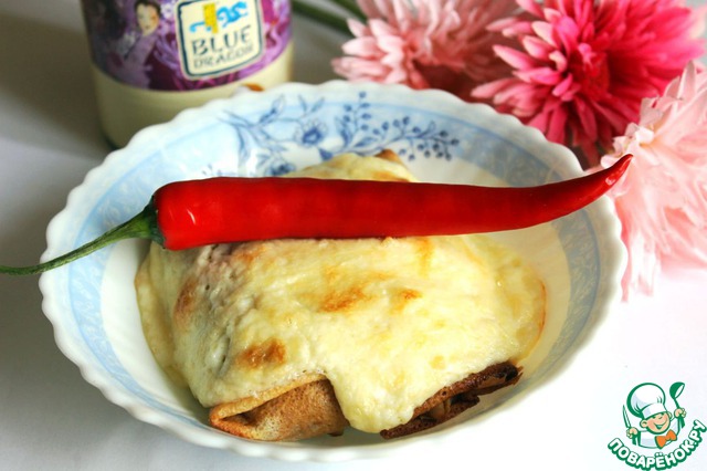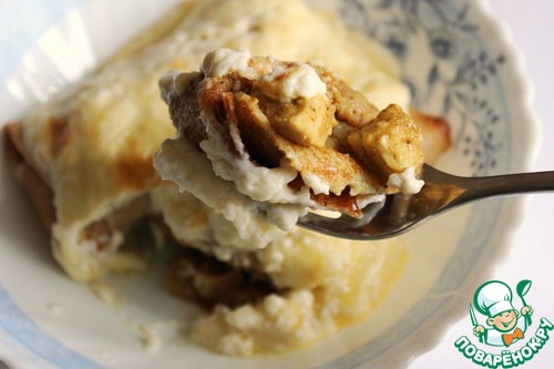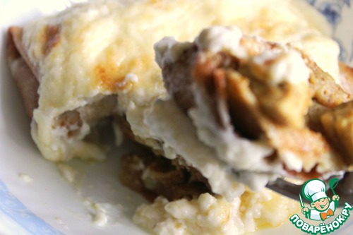 Порционно выложенные налистники с карри заливаем соусом и отправляем в разогретую до 180 градусов духовку на 15 минут до зарумянивания верха
