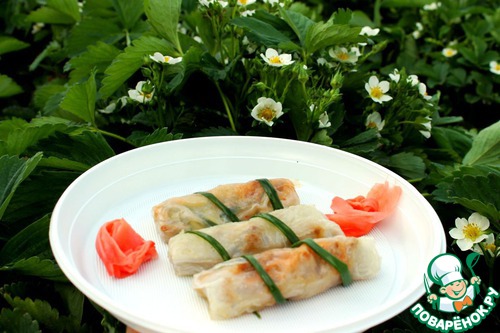 Оленька!Спринг-роллы - просто красавчики!Очень их люблю.Интересная идея с креветками!Обязательно попробую!Бесподобные фотографии,особенно на фоне цветущей земляники!