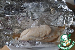 • Заворачиваем фольгу конвертиком. И обжариваем грудку на решётке мангала (барбекю) или прямо на углях 20 минут.