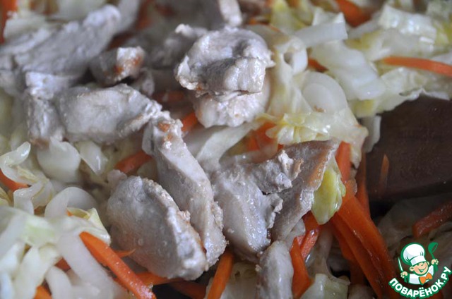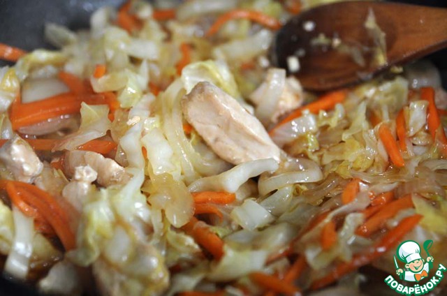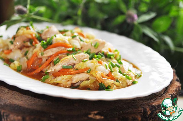Рецепт «Стир-фрай из курицы и молодой капусты»: