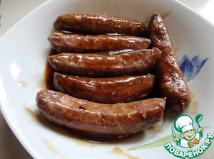 Очень достойный рецепт. Колбаски получаются с азиатской ноткой, а маринад в дальнейшем превращается в прекрасный соус, который хорош не только с колбасками. Попробуйте, я уверена, вы не разочаруетесь!
