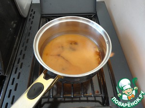 В оставшемся 0,25 стак. воды растворяем кукурузный крахмал и добавляем в кастрюлю с маринадом. Постоянно помешивая, ждем когда соус загустеет.